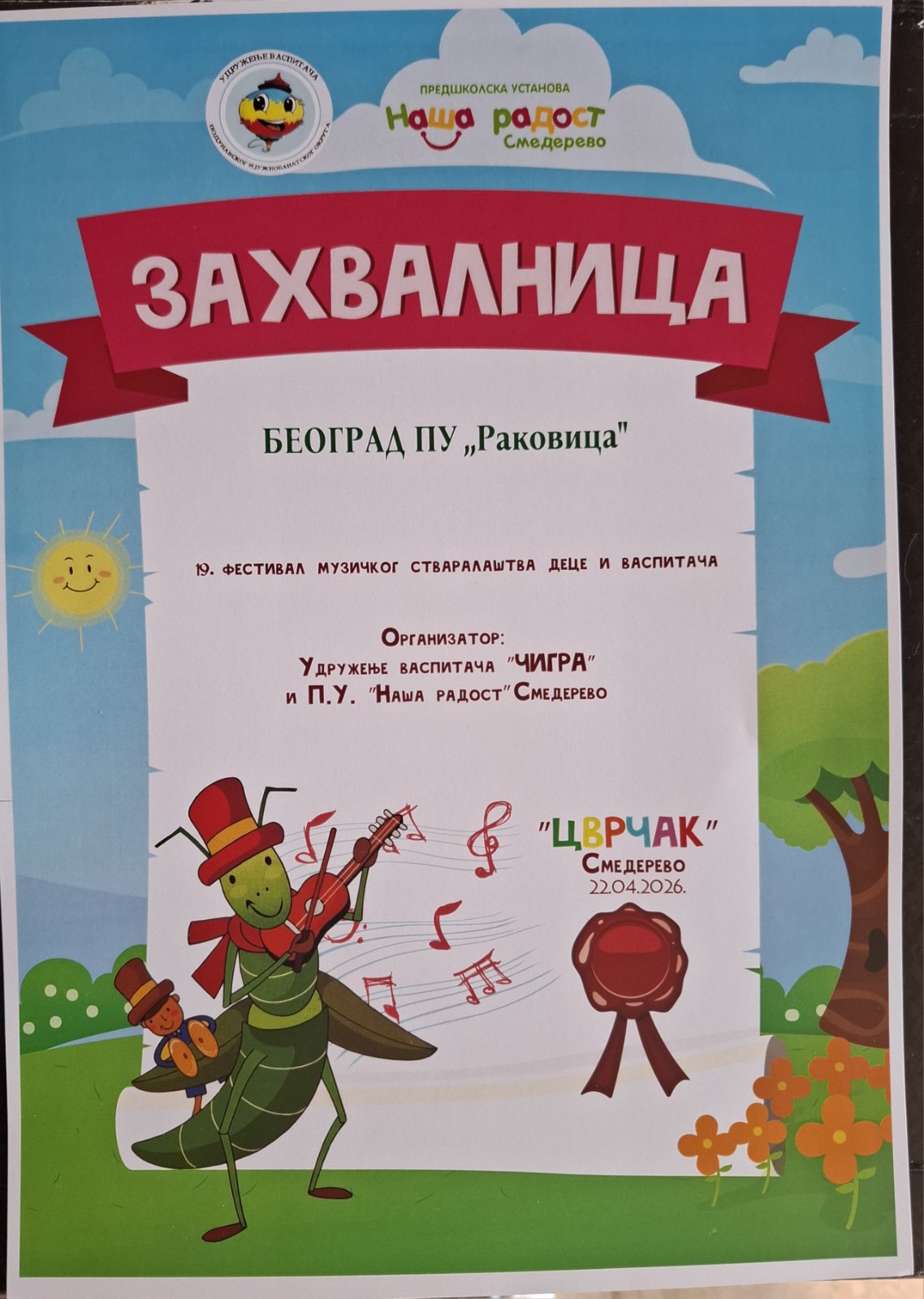 Дана 27.05.2025. године у организацији Удружења васпитача „Чигра“ и ПУ „Наша радост“, у Центру за културу Смедерево одржан је Фестивал дечјих драмских радости „ДЕДАР“.